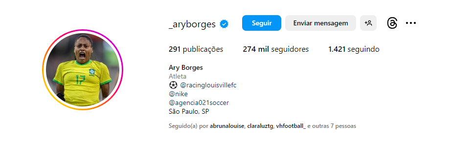 A atleta, que atualmente atua pelo Racing Louisville, já tendo passagem pelo Palmeiras, caiu nos encantos do público após ter mostrado todo o seu talento no jogo de hoje. E pasmem o seu sucesso foi tanto que, em menos de 12 horas, Ary já atingiu mais de 270 mil seguidores no instagram.