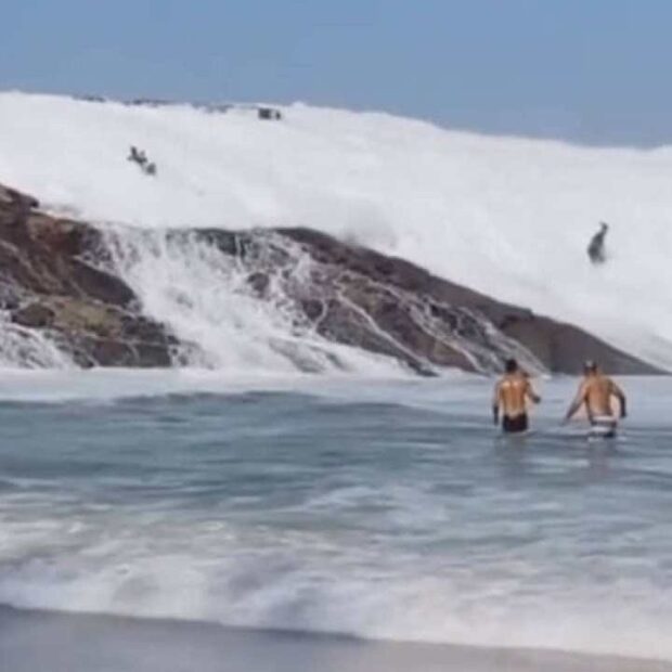 Pessoas que filmavam de longe registraram o incidente e no vídeo, podemos ver que, pelo menos, dois banhistas foram derrubados pela correnteza. Não há informações sobre o estado de saúde deles.