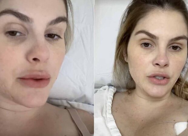 “Eu fiz o T no seio, coloquei 280 ml, porque tirou pele e tudo. Eu queria manter o tamanho, porém dar aquela levantadinha. Tem é mãe sabe que peito tende a cair, não tem para onde correr. Tirei a gordurinha da lateral, sabe quando coloca o sutiã e fica caindo? É horrível também. A cirurgia da barriga: a gente teve que fazer a cicatriz maior, da abdominoplastia, porque eu tive uma diástase muito grande, estava com quatro dedos. Então teve que abrir para costurar o músculo. E também pela quantidade de pele que estava sobrando, ele teve que fazer a maior”, disse ela.