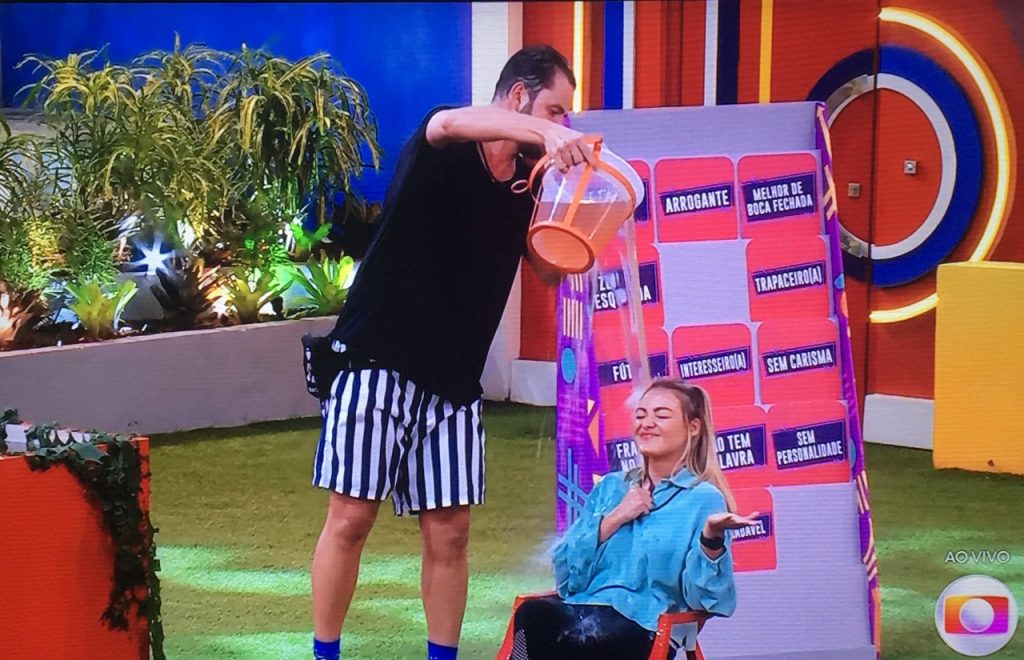 O bacharel em Direito, simplesmente, rebateu: “Bora! Afinal de contas, você está aqui há três semanas e só jogou agora!”. Os participantes não concordaram com a acusação da moça e levou um belo balde de água jogado pelo participante.