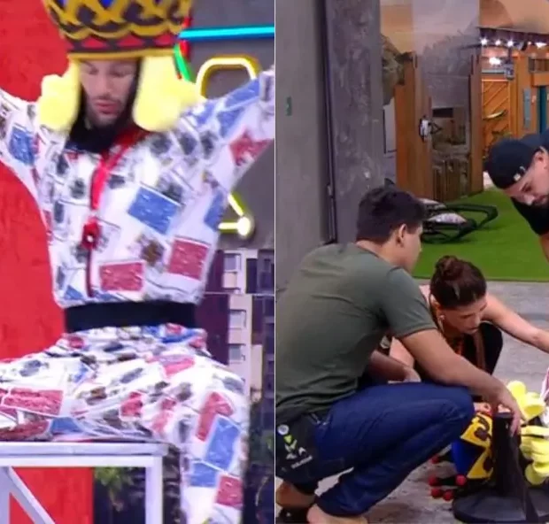 Mesmo sentindo dores, o ex-atleta foi incentivado pelos colegas a finalizar a montagem das cartas. “Cuidado para não bater de novo”, alertou Delma. O ginasta reuniu forças e conseguiu concluir o desafio.