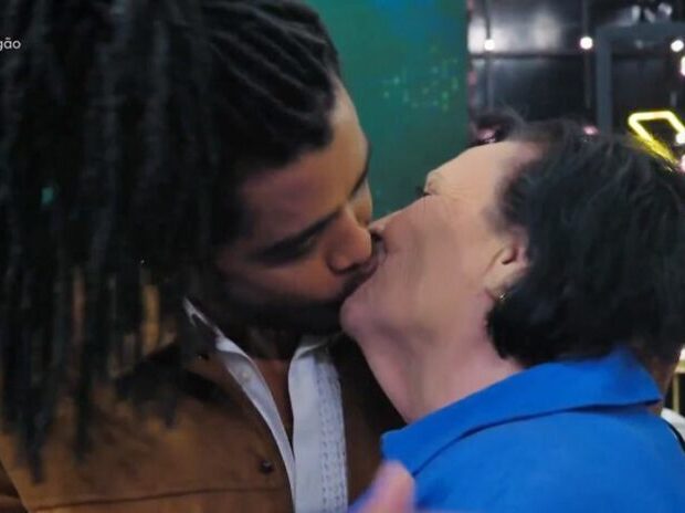 Acontece que, no último domingo (16), o Domingão com Huck recebeu o ex-BBB Diogo Almeida para participar da atração ‘Fora da Casinha’. Durante a presença de Diogo no programa, o humorista Ed Gama instigou o ex-brother a beijar a Dona Déa, que não perdeu tempo e a tascou um beijão.