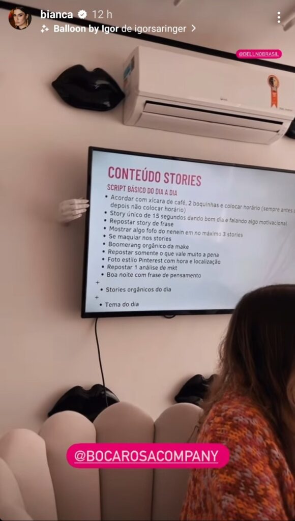 A lista foi exposta enquanto Bianca realizava uma reunião no “Boca Rosa Company“, seu escritório em São Paulo. Durante a reunião com parte da sua equipe, Bianca exibiu como organiza as postagens que irão ao ar em seu Instagram. E pasme com o roteiro!