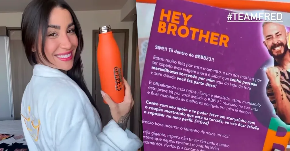 Em seguida, Bianca, além de se mostrar muito orgulhosa, provou que Fred aprendeu direitinho com a melhor marketeira do mundo, ela. O confinado fez um press kit especial para sua entrada no reality.