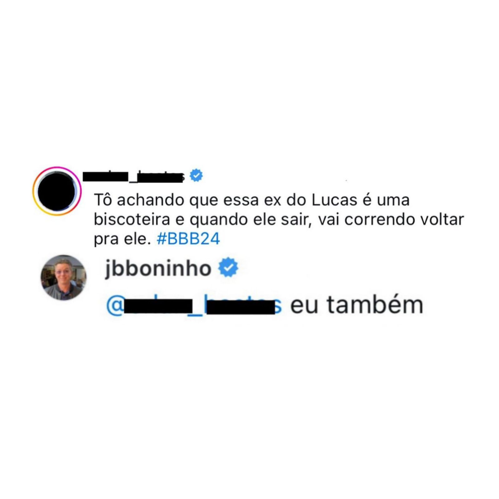 Mas o melhor desse comentário foi o próprio big Boss do BBB 24 Boninho acaba concordando com o internauta. Sim, meus amores, Boninho chamou Camila de biscoiteira na cara dura mesmo.