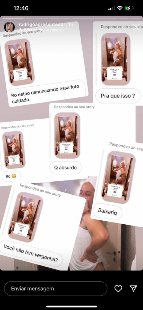Em uma conversa com Rodrigo, ele explicou que achou gostou do questionamento e resolveu postar, achou em sua galeria de fotos uma que tirou em setembro de 2021, após uma depilação e estava com o bumbum bonito. Ele contou também que não esperava tantos ataques e especulações, após a publicação a foto teve mais de 6 mil visualizações: “Não entendi esse falso moralismo das pessoas, a onde eu acabo achando que o problema não é com a foto e nem com a bunda e sim comigo”, declarou o apresentador.