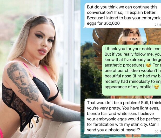 Em prints das conversas com o possível comprador, a influencer explica que, mesmo estando lisonjeada com o pedido, ficou surpresa. “Desculpe, estou surpresa!”, diz Ravena. Após um casamento falido, o comprador afirma que ainda mantém o sonho de ser pai. Ele disse à influencer que fez uma seleção e que o biotipo da influencer é o que ele procura. “Desculpe se estou sendo inconveniente, mas avaliei vários perfis e o seu biotipo seria perfeito para o meu filho.”