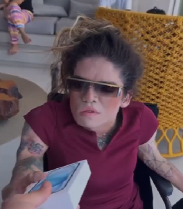 Diante disso, em um vídeo que foi publicado por carlinhos, ele aparece presenteando a influenciadora convidada com um iPhone 15, afirmando que uma influenciadora tem que ter um celular melhor para gravar os seus vídeos, já que com o seu antigo celular os vídeos de Leandrinha ficavam travando.