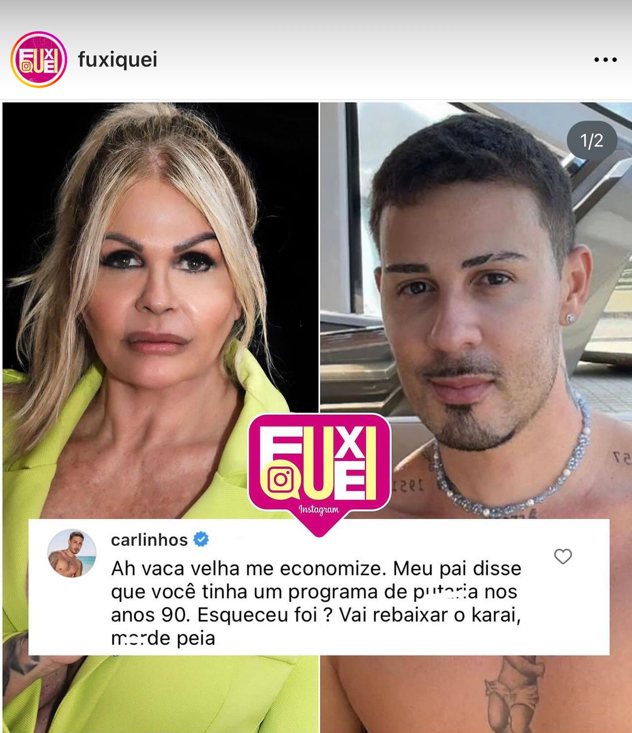 “Me poupe. Ah, vaca velha, me economize. Meu pai disse que você tinha um programa de put*ria nos anos 90. Esqueceu, foi?”, finalizou Carlinhos.