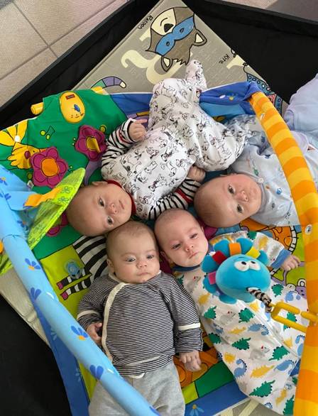 Ela, que em julho deste ano deu à luz a quatro meninos, diz que tem sido uma experiência desafiadora e mais trabalhosa do que o esperado, porém muito feliz.