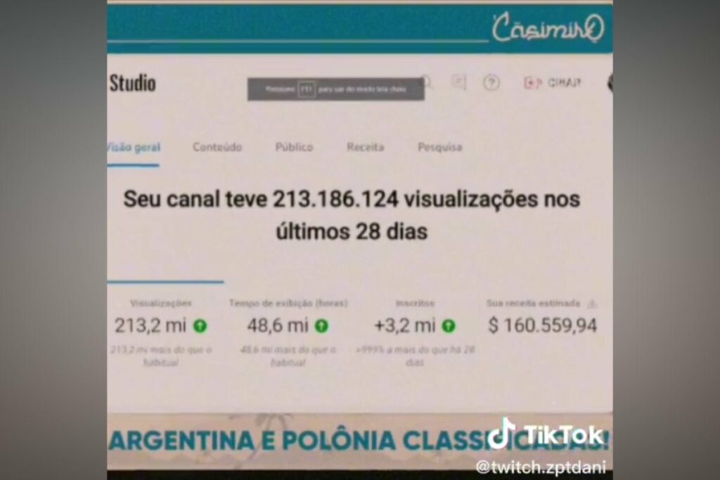 Que o streamer Cazé é um grande sucesso e o acumulador de uma grande fortuna não é novidade pra ninguém, porém eu não sonhava que seus ganhos com o YouTube seriam tão grandes assim. Na tarde de ontem (30), durante uma das transmissões que o influenciador está fazendo da copa do mundo, logo após o jogo entre Argentina X Polônia, foi vazada uma imagem que revela o faturamento do youtuber na plataforma.