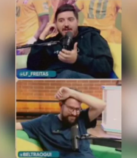No momento em questão, a live estava sob os cuidados do narrador Luís Felipe Freitas e do produtor Guilherme Beltrão, que ficaram sem graça com o ocorrido.