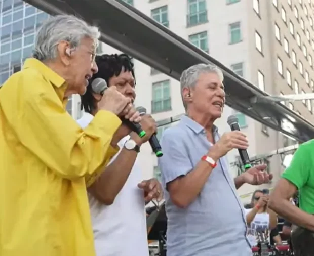 Além disso, Caetano Veloso recebeu os cantores Djavan, Gilberto Gil e Chico Buarque para comandarem o ato. Juntos, eles cantaram “Cálice”.
