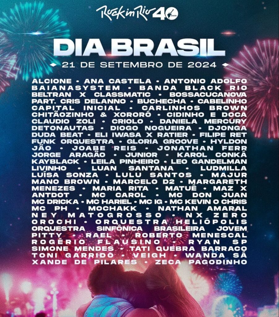 Vale ressaltar que no dia 21 de setembro terá o Dia Brasil no Rock in Rio. Vejam as atrações maravilhosas que teremos nesse dia.