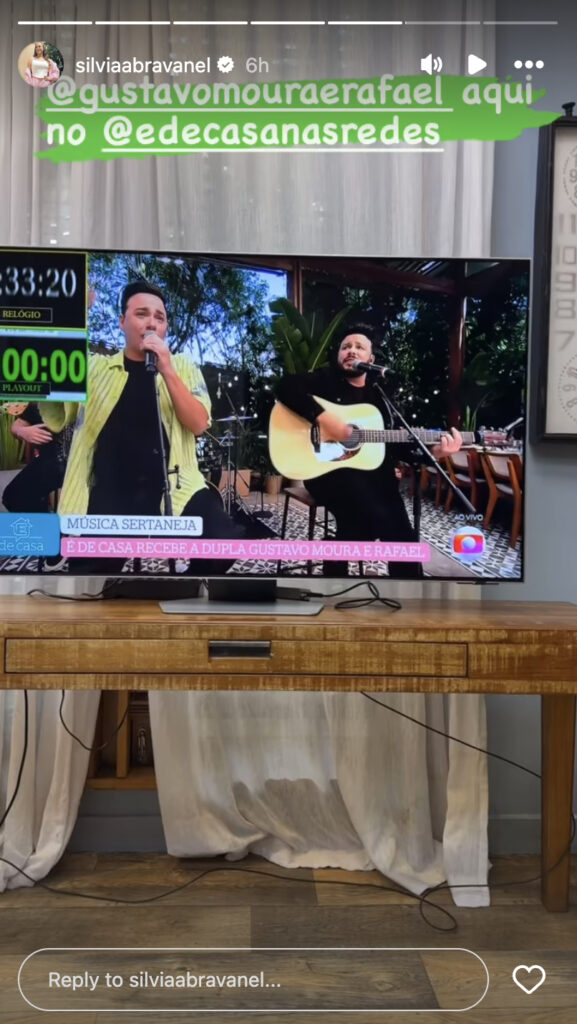 “Gente, tô aqui, ó, no camarim… Prestigiando essa família talento, cantam demais. É que o som não vai sair, o som tá lá fora, e eu tô no camarim. Meu amor e meu cunhado, amo isso… Amo o reconhecimento do trabalho deles. Parabéns, meninos, vocês merecem!”, disse ela em um vídeo. Os artistas foram recebidos pelo apresentador Thiago Oliveira.