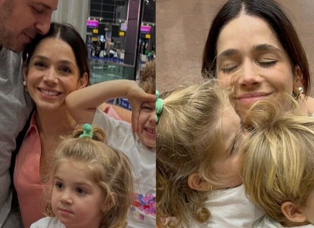 A atriz, que morava no exterior com a família desde janeiro do ano passado, decidiu retomar o trabalho nos folhetins brasileiros e, por isso, está passando uma temporada em sua terra natal durante as gravações da novela “Família É tudo” em que interpreta ‘Maya’. Após curtirem as férias com a mãe, seus filhos estão retornando para casa com o pai, Ramón Velázquez, e o avô materno, Eduardo Balsalobre.