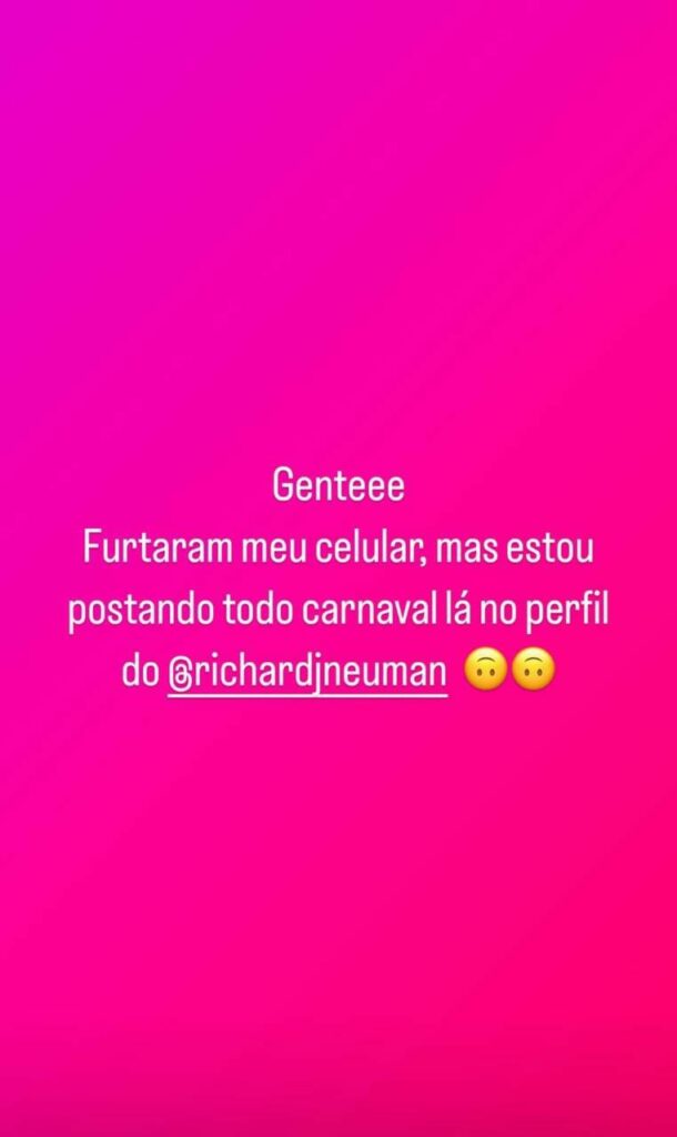 “Estou abaladíssima, mas também estou muito feliz. Fui furtada, mas é Carnaval!”, contou a humorista.