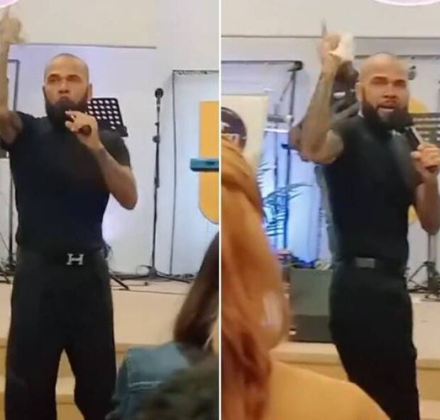 A Igreja Evangélica Elim, em Girona um galpão cheio de gente, câmeras, celulares, glória, aleluia e um Daniel Alves literalmente caminhando entre as cadeiras como se estivesse entrando no Camp Nou.