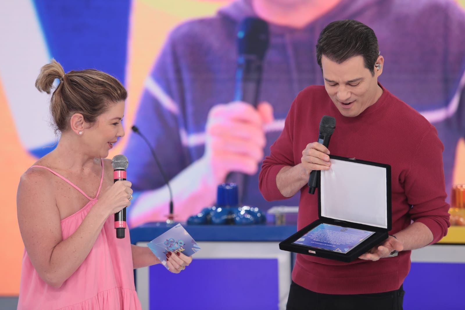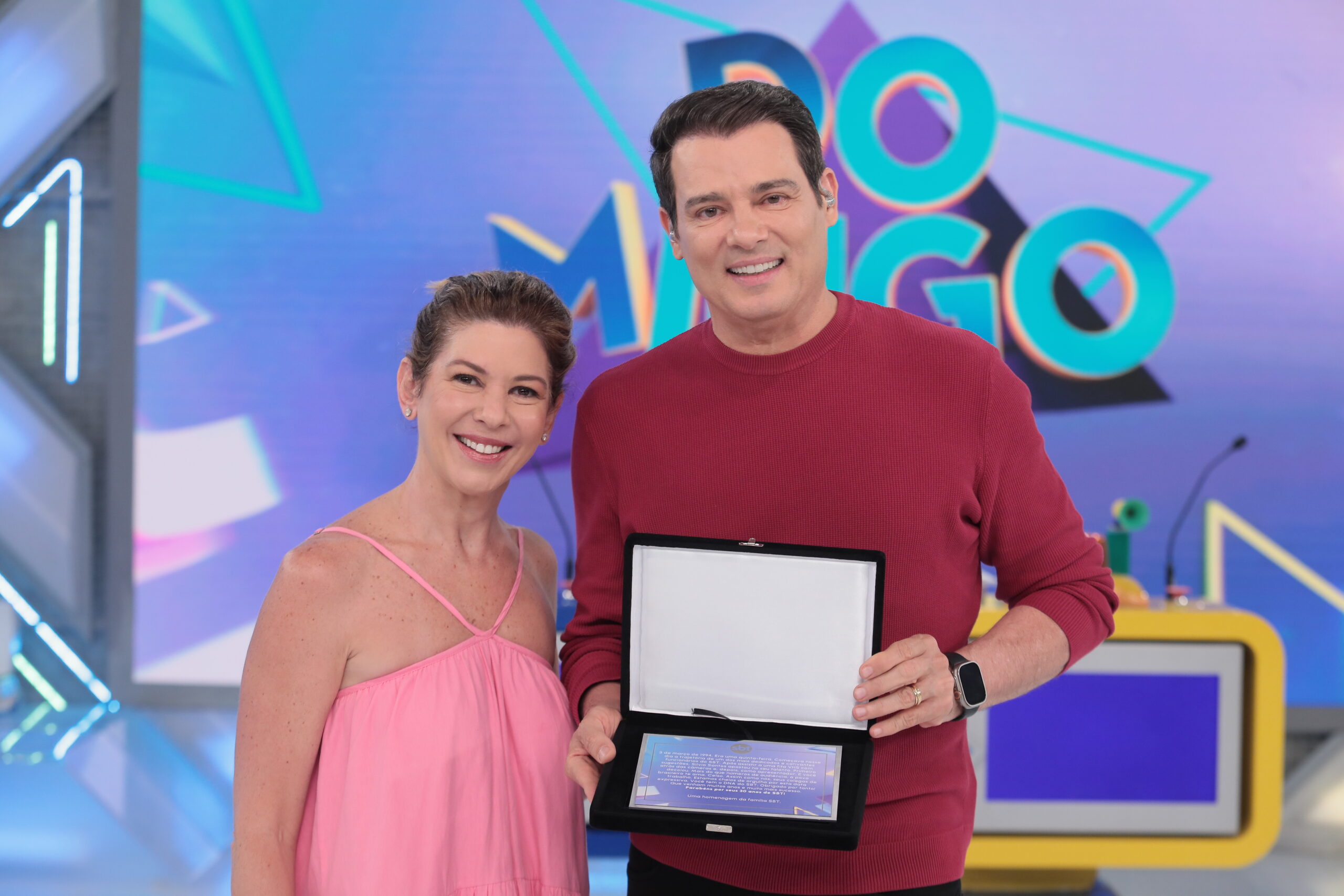 Minha genteeee, acabo de descobrir que o apresentador Celso Portiolli completa, exatamente neste domingo (3), 30 anos de SBT. e durante a exibição do ‘Domingo Legal’, Celso foi surpreendido com a presença de Daniela Beyruti, CEO do SBT, que veio ao palco especialmente para entregar-lhe uma placa comemorativa pela ocasião com a seguinte mensagem: