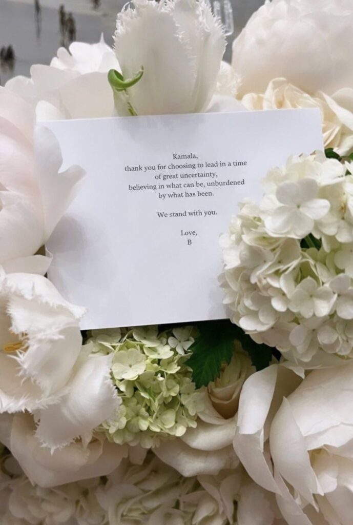 A declaração de apoio mais recente veio de Beyoncé, a cantora enviou flores para Kamala Harris em apoio a sua candidatura à Presidência dos Estados Unidos.
