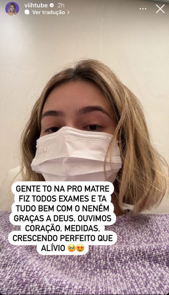 Logo depois, Viih apareceu nas redes para falar sobre o estado de saúde dela e do bebê: