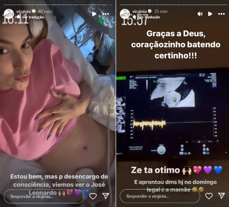 Assim que saiu da emissora paulista, ela seguiu para a maternidade mais próxima e fez o exame. Em seus stories, Virginia reforçou que o herdeiro estava ótimo e que tudo não passou de um grande susto.
