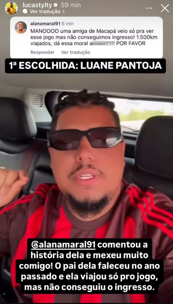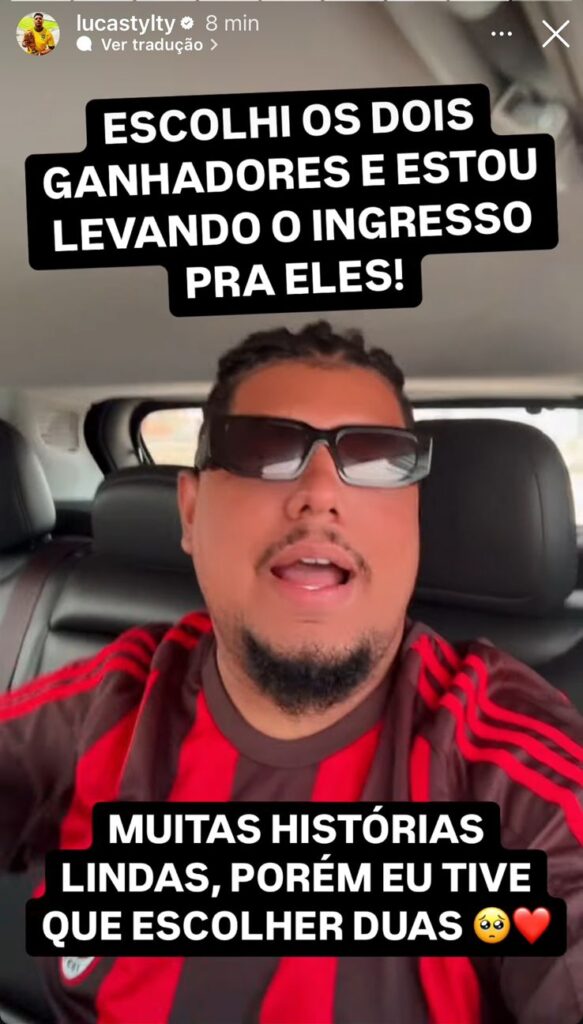 “Vou levar dois torcedores para vivenciar o que eu sempre sonhei e que hoje posso proporcionar. Vamos juntos tornar este dia ainda mais especial para quem tem o Flamengo no coração,” disse Lucas, no post que viralizou entre os torcedores rubro-negros.