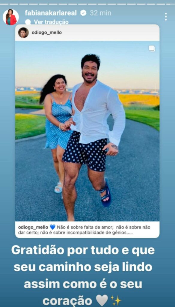 Ainda na legenda de seu post, Diogo exaltou o tempo que passaram juntos e revelou o quão grande é sua admiração pela ex-companheira.