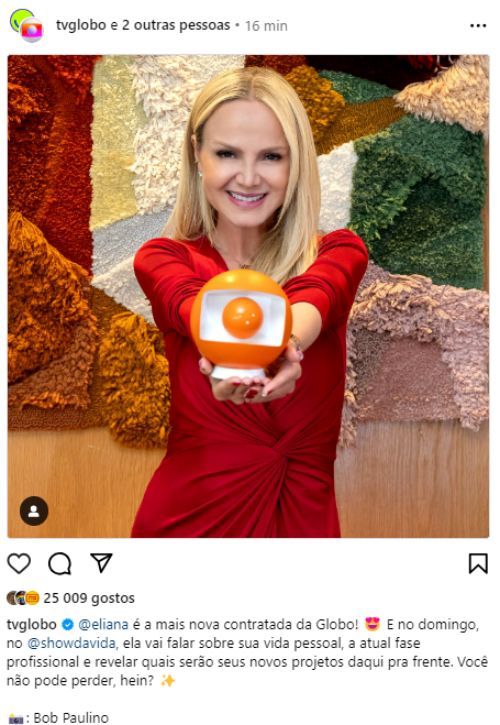MEU DEUS! Estou pirando? Não me belisquem! Eliana está na Globo e o anúncio foi feito por meio de sua conta oficial no Instagram. A apresentadora chegou a mostrar o crachá da emissora.