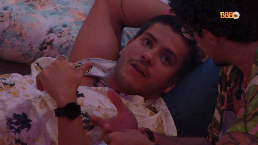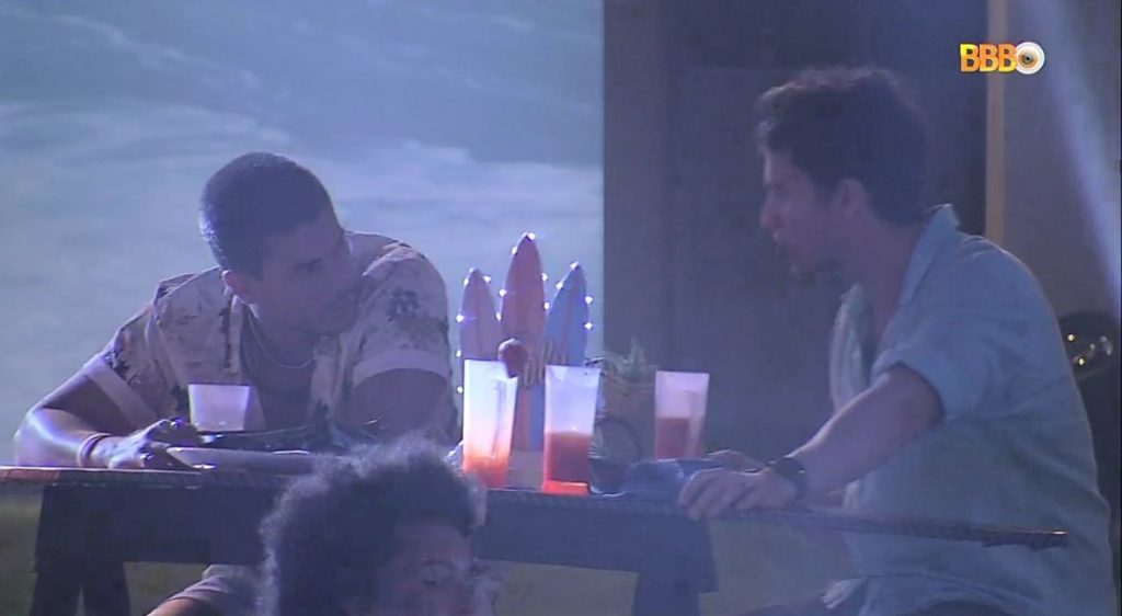 “Você sabia que eu estava tentando livrar o Tiago do bagulho [paredão]”, disse o marido de Maira Cardi. O barão tentou se explicar dizendo que não daria para salvar o Tiago, mas que ainda estava sondando se Abrava estava na reta de votações. Arthur deu o exemplo de que se fosse Eslovênia a mira e ele não contasse a Lucas que votaria nela e que gostaria de ir com ela ao paredão, ele não gostaria. E isso realmente aconteceu, porque Lucas fez isso em conversa com o pessoal do Lollipop.