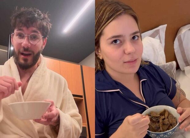 O terceiro desejo, no entanto, não foi de uma comida específica, e sim de um recipiente! Segundo o pai da pequena Lua Di Felice, de 1 ano, Viih quis comer algo em uma combuca. Eliezer até mesmo explicou o preparo específico do ‘prato’. “Tem que ser arroz, a carne moída, esquenta, fio de azeite prolongado, salada, que tem que estar picadinha. Que desejo mais estranho. E tem que comer assim, de combuca, que loucura. Vai entender”, disse o influenciador.