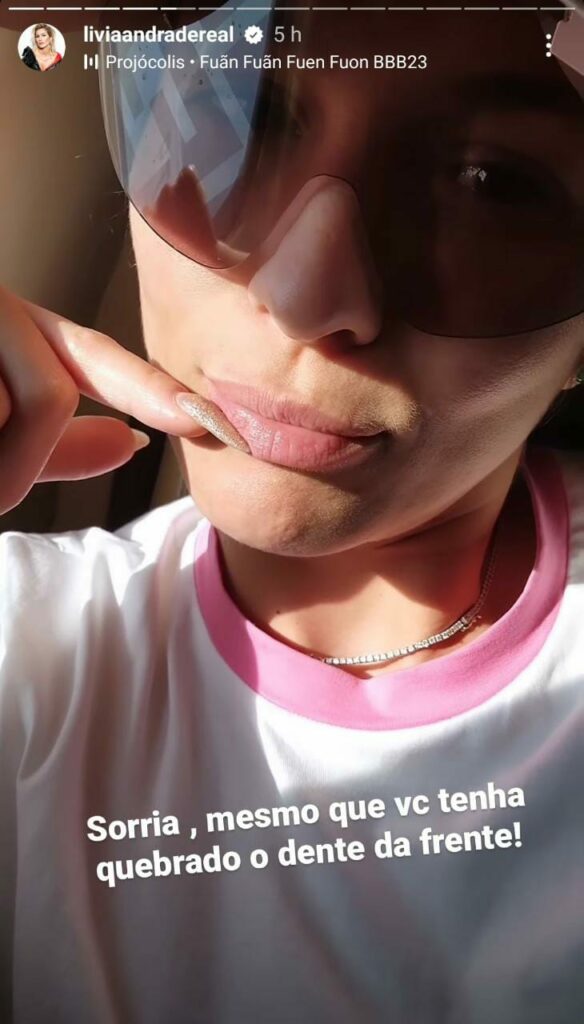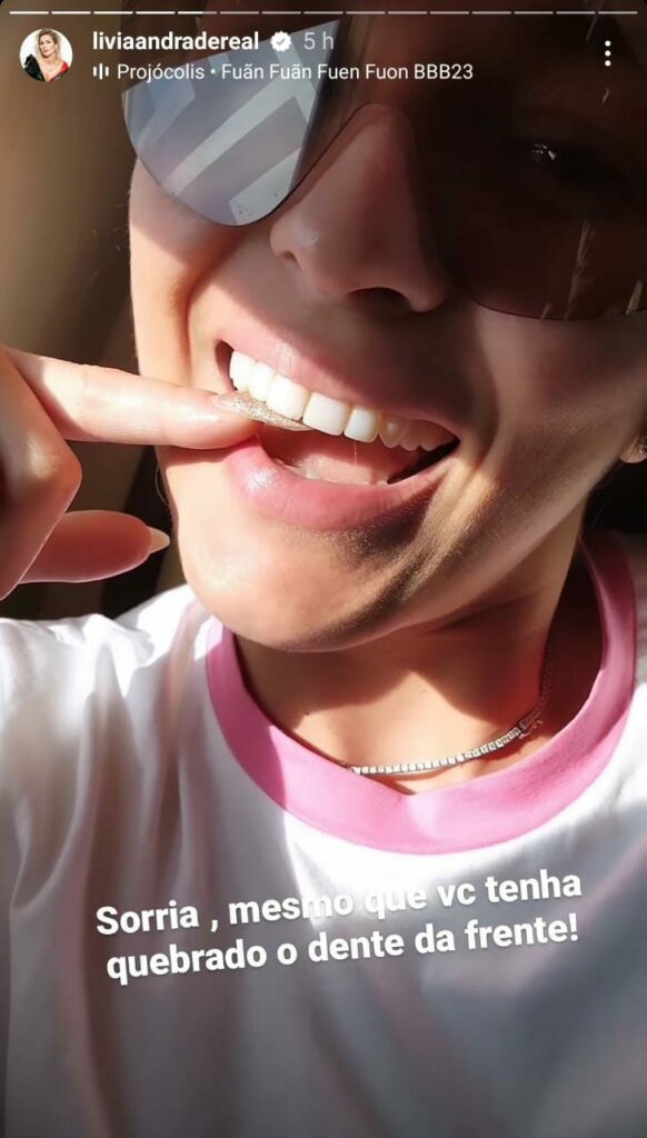 “Sorria, mesmo que você tenha quebrado o dente da frente”, legendou Lívia.