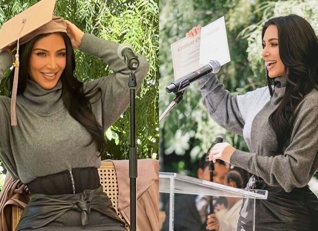 Durante o recebimento do diploma, uma das mentoras de Kim fez um breve discurso sobre a trajetória da recém-formada. “Seis anos atrás, Kim Kardashian entrou nesse programa sem nada além de um desejo verdadeiro de lutar por justiça. Sem aulas em faculdades de Direito, sem atalhos. Apenas determinação”, declarou.