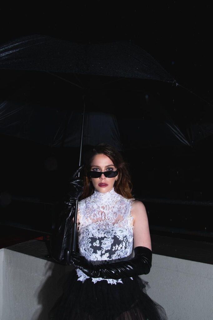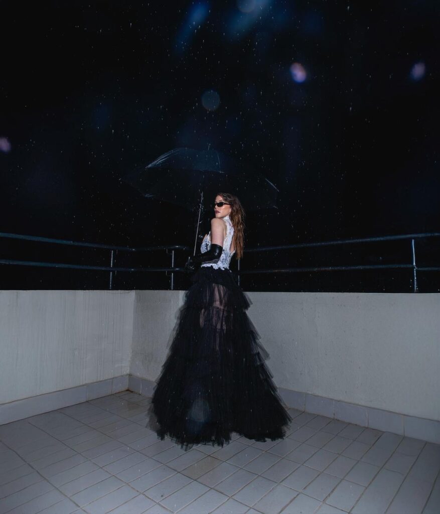 SegundoGabriel Fernandes,o styling partiu da ideia de revisitar o glamour dos bailes de gala sob um olhar contemporâneo. “Queríamos um look com alma de tapete vermelho, que exaltasse a beleza da mulher e o trabalho artesanal da alta-costura. Escolher Lethicia foi natural: ela tem um DNA fashionista muito forte. O vestido mistura o estilo clássico com elementos ousados: a estrutura da saia em tule, a renda, as luvas longas e a clutch dourada em forma de seio, que também simboliza o feminismo que Bia defende”, comenta.