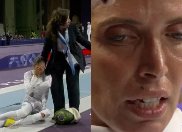 Eitaa gente, parece a esgrima não começou muito bem para o nosso Brasil nas Olimpíadas em Paris 2024.infelizmente, uma das nossas representantes na modalidade, Nathalie Moellhausen, foi eliminada na estreia depois de passar mal durante o combate indiviual feminino. A brasileira estava duelando contra a canadense Ruien Xiao.