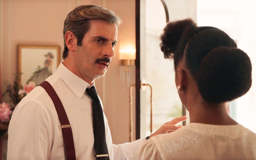 Enquanto Haydée se irrita com a provocação, Araújo percebe algo muito mais grave. Intrigado, ele comenta: “O rasgo do vestido de Olga…”. Sem entender, Haydée questiona: “O que tem isso?”. É então que o advogado revela a conexão explosiva: “Asdrúbal encontrou um pedaço de pano na fábrica, depois do incêndio, parecido com o tecido do vestido que Olga está usando…”.
