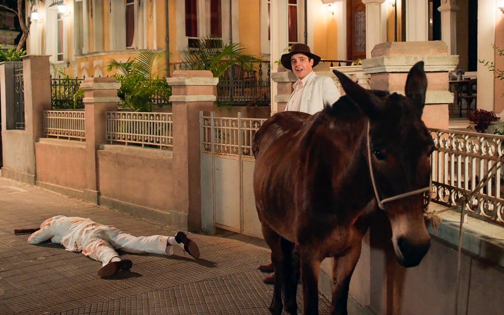 A discussão esquenta, os dois partem para a briga, e o vilão se arma com um pedaço de pau para agredir Candinho. Mas, quando tudo parecia perdido, surge o herói improvável: Policarpo. O burro dá um coice certeiro e derruba Ernesto, salvando o caipira.
