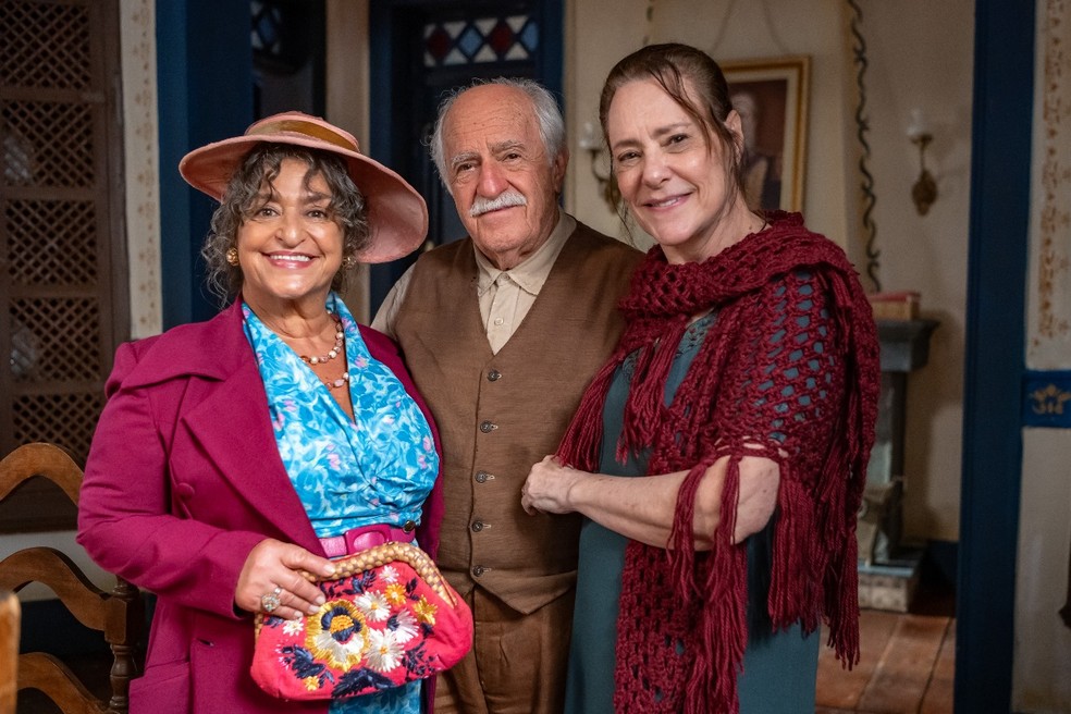 O marido da Boca de Fogo tenta escapar do assunto, mas a prima insiste, mostrando uma foto antiga. “Bons tempos! Eu fui a sua premera namorada! Óia a prova! Ocê dava cada beijo bão!”, provoca. Cunegundes, claro, não deixa barato e rebate de imediato: “Má eu fui a úrtima namorada! Quinzinho trocou ocê por mim, num foi, Quinzinho? Fala pra ela!”.