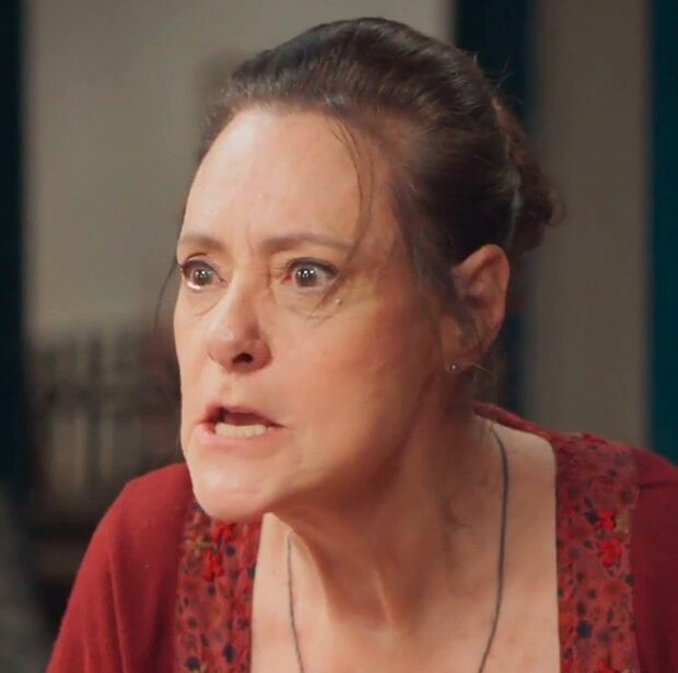 O marido da Boca de Fogo tenta escapar do assunto, mas a prima insiste, mostrando uma foto antiga. “Bons tempos! Eu fui a sua premera namorada! Óia a prova! Ocê dava cada beijo bão!”, provoca. Cunegundes, claro, não deixa barato e rebate de imediato: “Má eu fui a úrtima namorada! Quinzinho trocou ocê por mim, num foi, Quinzinho? Fala pra ela!”.