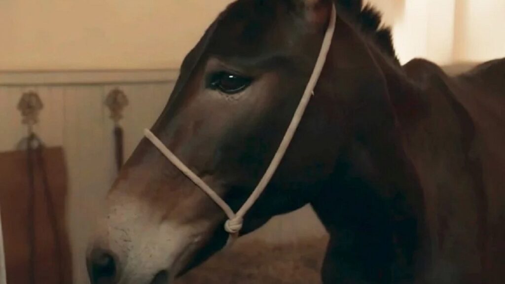 “O Policarpo é inocente! Fala, Simbá!”, grita Samir, enquanto o burro é levado.