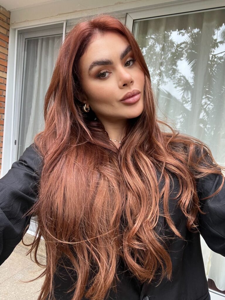 Ela apostou na tonalidade ruivo acobreado, também chamada cowboy copper. A também musa da Gaviões da Fiel trabalhou na mudança com sua consultora de imagem. “Mudei para minha nova fase. Sempre que eu vou mudar o cabelo eu passo para a consultora de imagem.