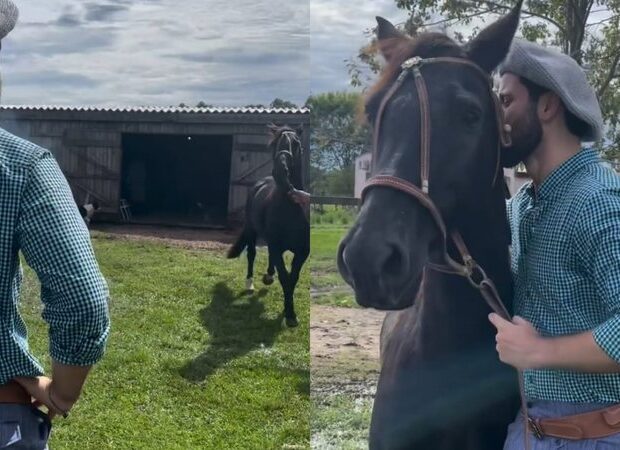 No vídeo publicado no feed do Instagram, o estudante aparece bastante emocionado ao ver Chupim. Ao se aproximar dele, o ex-BBB faz carinho e o beija. “Como o bom gaúcho, hoje reencontro o meu companheiro Chupim, com uma alegria que não cabe no peito. Obrigado aos envolvidos nos cuidados do meu cavalo!”, escreveu Matteus na legenda da publicação.
