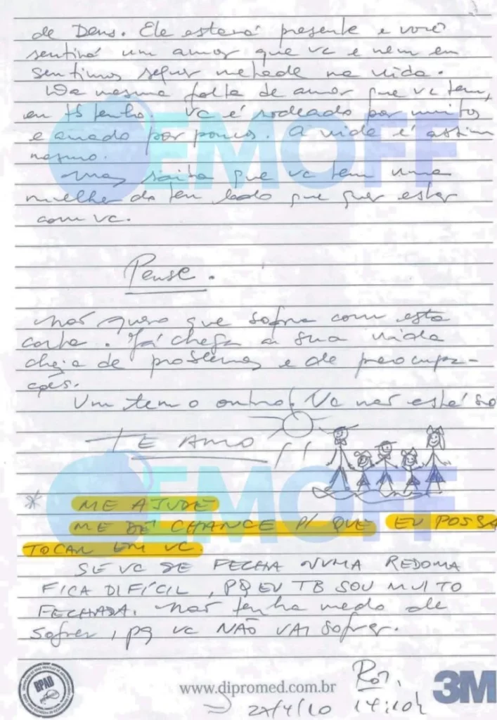 Essa carta, que o EM OFF teve acesso com exclusividade é bastante polêmica. No texto escrito à mão , a médica dizia saber da orientação sexual de Gugu e que isso era um “problema”.