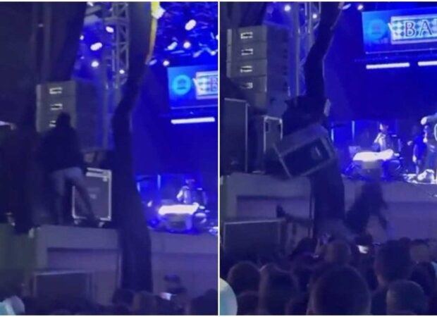 Nesse vídeo que foi gravado por uma pessoa da plateia, podemos ver uma mulher escalando a caixa que estava próxima do palco. Quando ela consegue subir, acaba se desequilibrando e caindo junto com uma case – caixa usada para proteger, conservar e transportar os instrumentos de forma adequada. O material cai em cima da mulher e em algumas pessoas da platéia.