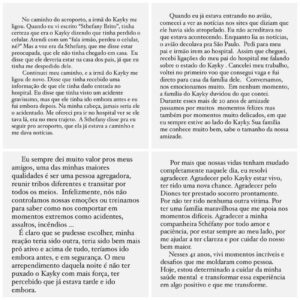 E acrescentou: “Por mais que nossas vidas tenham mudado completamente naquele dia, eu resolvi agradecer. Agradecer pelo Kayky estar vivo, ter tido uma nova chance. Agradecer pelo Diones ter prestado socorro prontamente. Por não ter tido nenhuma outra vítima. Por ter uma família maravilhosa que me apoia nos momentos difíceis. Agradecer a minha companheira Sthefany por todo amor e paciência, por estar sempre ao meu lado, por me ajudar a te rclarezae por cuidar do nosso bem maior”