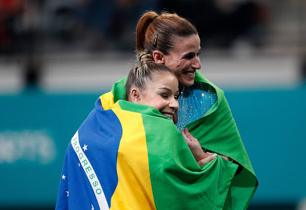 Nesta terça-feira (6), um painel especial em Paris reuniu Rebeca Andrade, Flávia Saraiva, Jade Barbosa, Lorrane Oliveira e Júlia Soares para celebrar as vitórias da equipe de ginástica artística do Brasil nos Jogos Olímpicos de 2024.