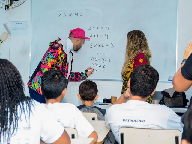 Nessa visita, o ex-BBB não só brincou com as crianças que participam do reforço escolar oferecido por um dos projetos do complexo, como improvisou uma aula para ensinar algumas equações de matemática a elas, momento em que o deixou bem emocionado.