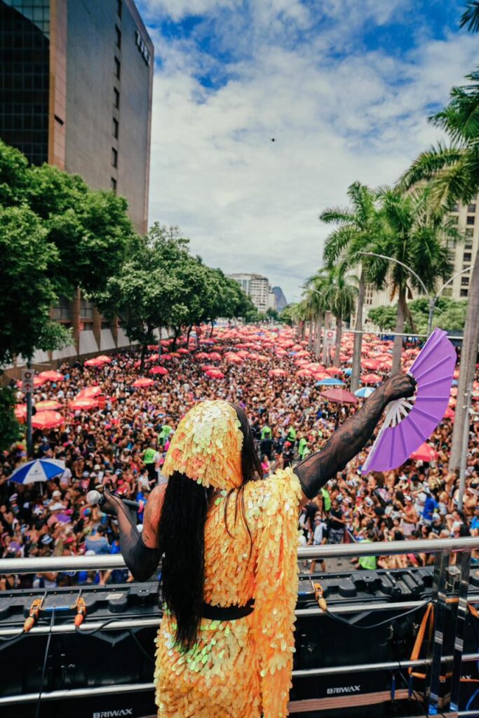 No repertório, “Mau Contato”, “Tô Mal” e “Canceriana” surgiram como manifesto pop em meio à multidão. A chamada Era Cósmica ganhou corpo, suor e coro coletivo, daquele jeito que só o carnaval de rua do Rio sabe fazer. Nada de performance tímida. Era entrega total, olhando para o público como quem diz “vocês vieram, eu vim também”.