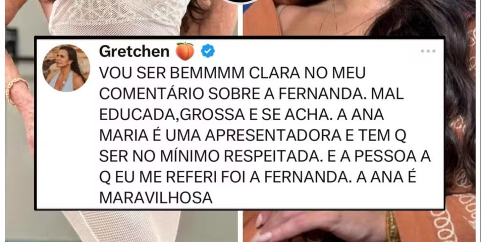 Amores, após o comportamento da ex-BBB Fernanda no programa “Mais Você” viralizar na web, a musa brasileira Gretchen Miranda, resolveu sair em defesa da apresentadora Ana Maria Braga, detonando o comportamento da ex-confinada.