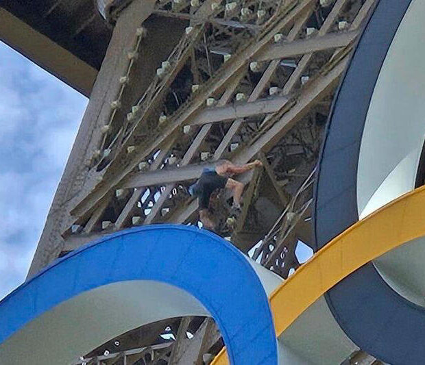 SOCORRO! Estou aqui em casa surtando com esse vídeo que uma amiga minha que mora na França acabou de me mandar. Parece que os arredores da Torre Eiffel tiveram que ser evacuados neste domingo (11), dia da cerimônia de encerramento das Olimpíadas de Paris-2024, porque um homem estava escalando o monumento de 330 metros de altura. Vídeos e fotos de pessoas que estavam no local mostram o escalador no ponto da torre onde estão posicionados os anéis olímpicos.